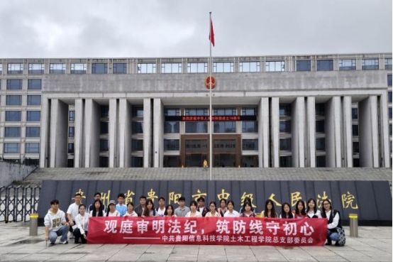 为扎实推进党纪学习教育常态化长效化,切实增强师生党员的法治意识和风险防范能力,10月16日,Beat365土木工程学院党总支组织师生党员代表赴贵阳市中级人民法院,开展“观庭审明法纪,筑防线守初心”诈骗犯罪庭审旁听主题党日活动,将法治教育课堂搬进审判现场。