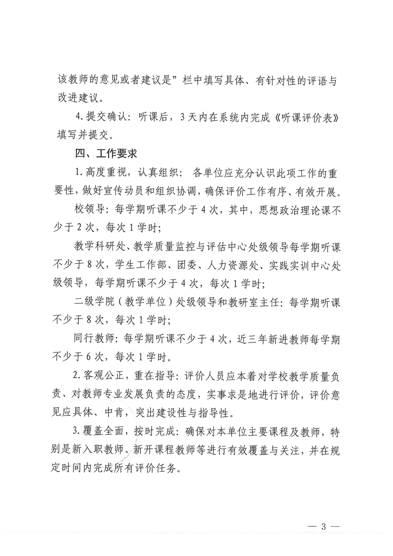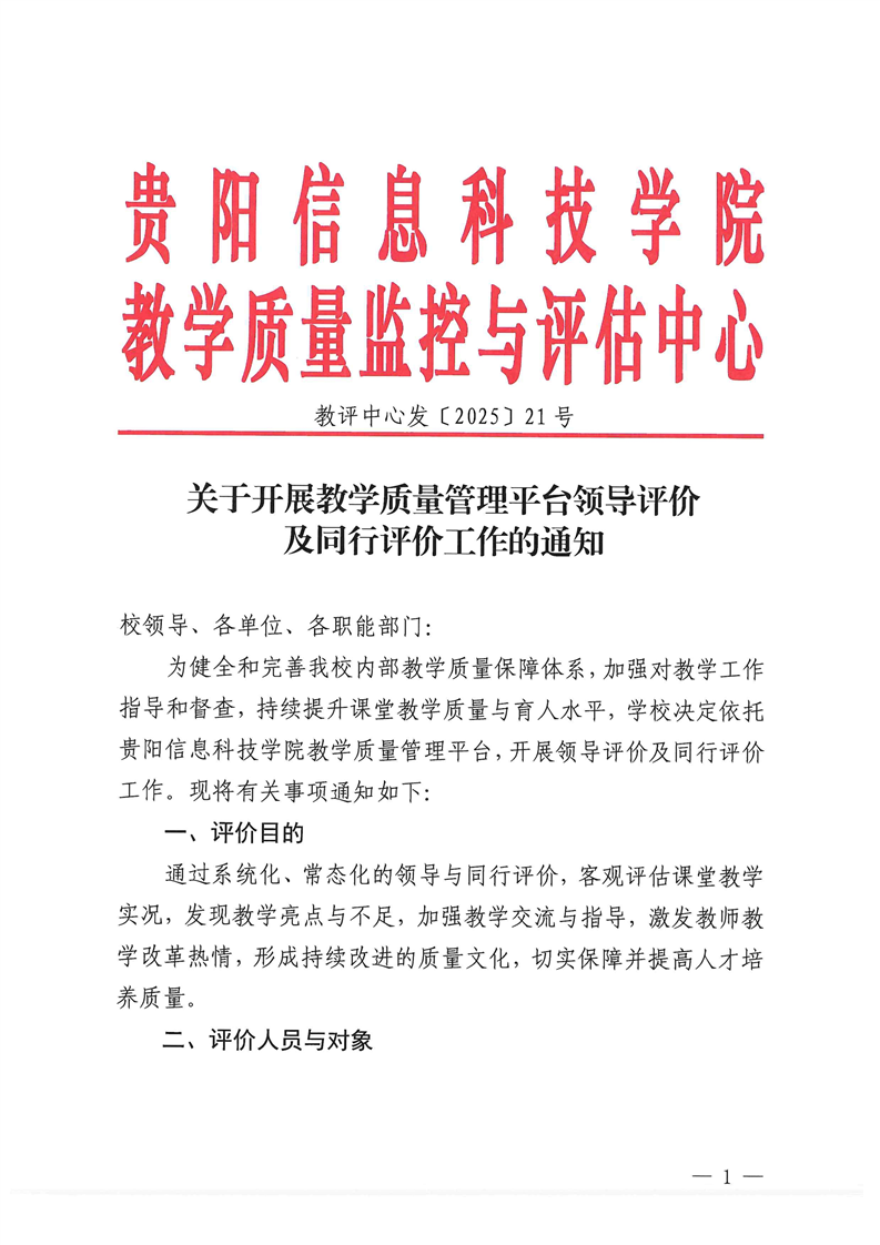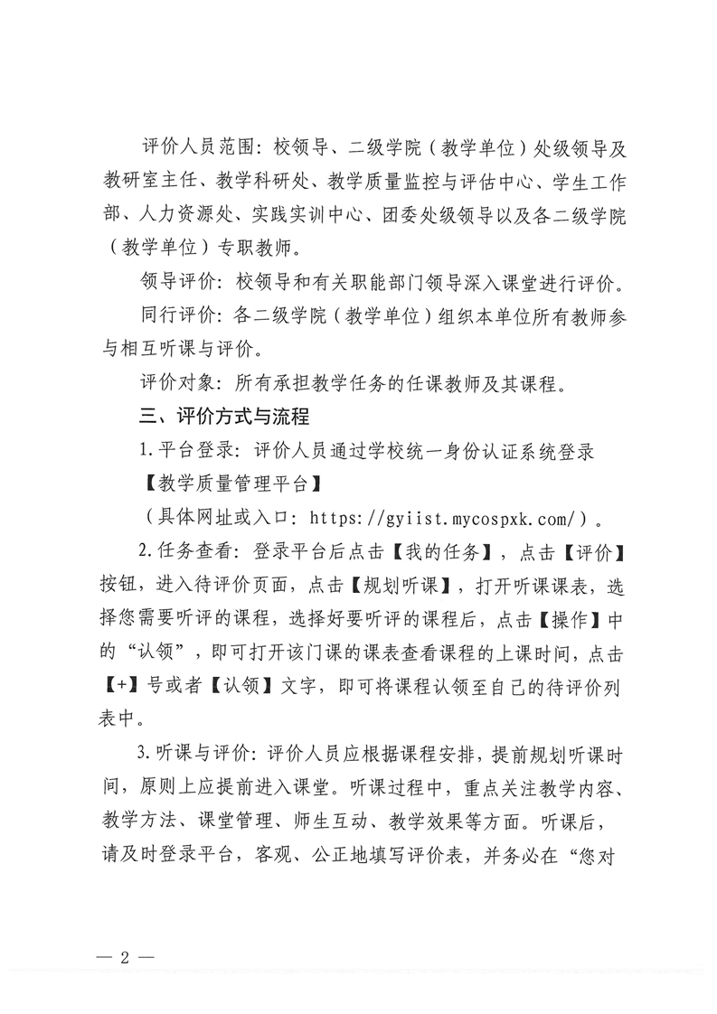 关于开展教学质量管理平台领导评价及同行评价工作的通知