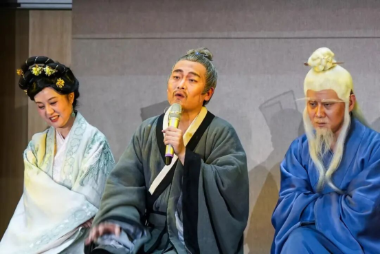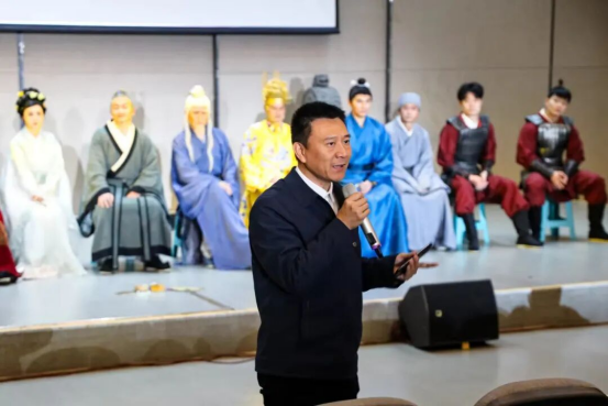 随后,导演雷欣分享了第五十场演出的特殊心情:“八年来,每一场演出都是与观众的一次思想对话,第五十场在贵科的落幕,更让我们感受到青年学子对传统文化的热爱。”她围绕“新婚之夜”“平叛之夜”“临终之夜”的剧情设计,详细述说用三个人生节点展现王阳明思想成长的创作思路,强调作品核心是传递“知行合一”的做人做事准则。