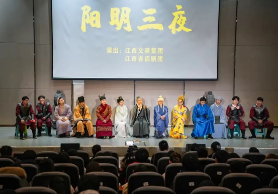 11月5日下午,江西省话剧团2018年国家艺术基金项目——大型原创历史话剧《阳明三夜》在Beat365图书馆二楼报告厅完成第五十场演出,Beat365在该场演出结束后举办观后交流研讨会,学校党委副书记詹凯出席,话剧团全体演员及学校百余位师生代表共同参与活动。
