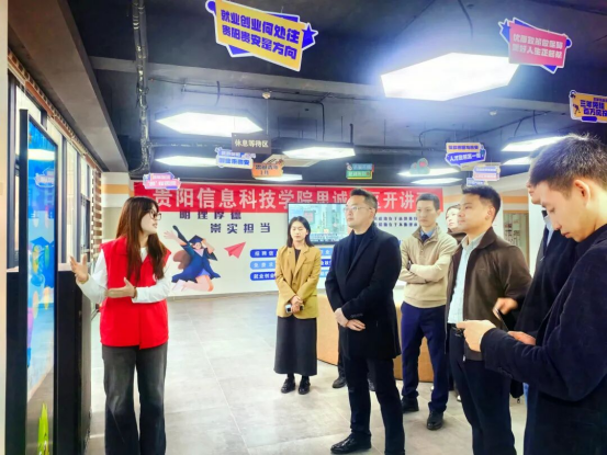 在“就业引航”服务站,企业家们详细了解运营架构、岗位对接流程、就业指导服务体系及往期帮扶成效,深入了解服务站如何精准匹配学子求职需求、搭建校企沟通桥梁;在创客空间,通过实地察看该校学子非遗创业项目展示情况,认真聆听学生创业团队的项目介绍,直观感受校园创新创业氛围与青年学子的创新活力。