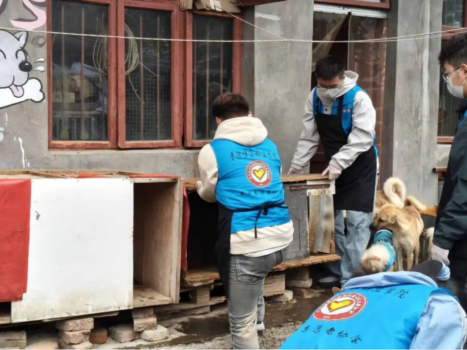 一到基地,在负责人的耐心指引下,志愿者们秒变“暖心铲屎官+基建小能手”:扫帚一挥,狗舍内外落叶杂物一扫而空;那些漏风渗水的破旧木箱小窝,全被换成了崭新牢固的“豪宅”,还铺上软和垫料,让每只狗狗都能拥有“五星级休憩空间”。
