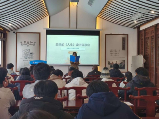 分享环节中,十位学子依次登台,带来各具特色的读书感悟。苏子豪同学以《人生》为蓝本,将路遥笔下的人物命运与“大学之道”相联结,从“明明德、亲民、止于至善”的智慧中解读人生选择的本质;古剑云、陈朝芬等同学则巧妙融合AI技术与经典阅读,或用智能工具解析文学作品的叙事逻辑,或通过数据可视化呈现经典的时代影响力,展现了科技赋能人文的创新思维;张将、欧阳思云、施旺等同学分别从不同经典著作出发,围绕理想追求、文化传承、成长蜕变等主题分享心得,既有对文本的深入解读,也有结合自身经历的真切感悟,引发全场共鸣。