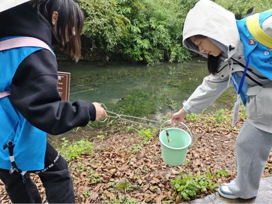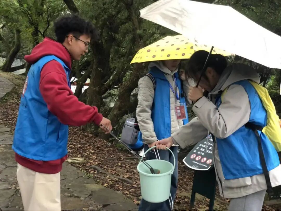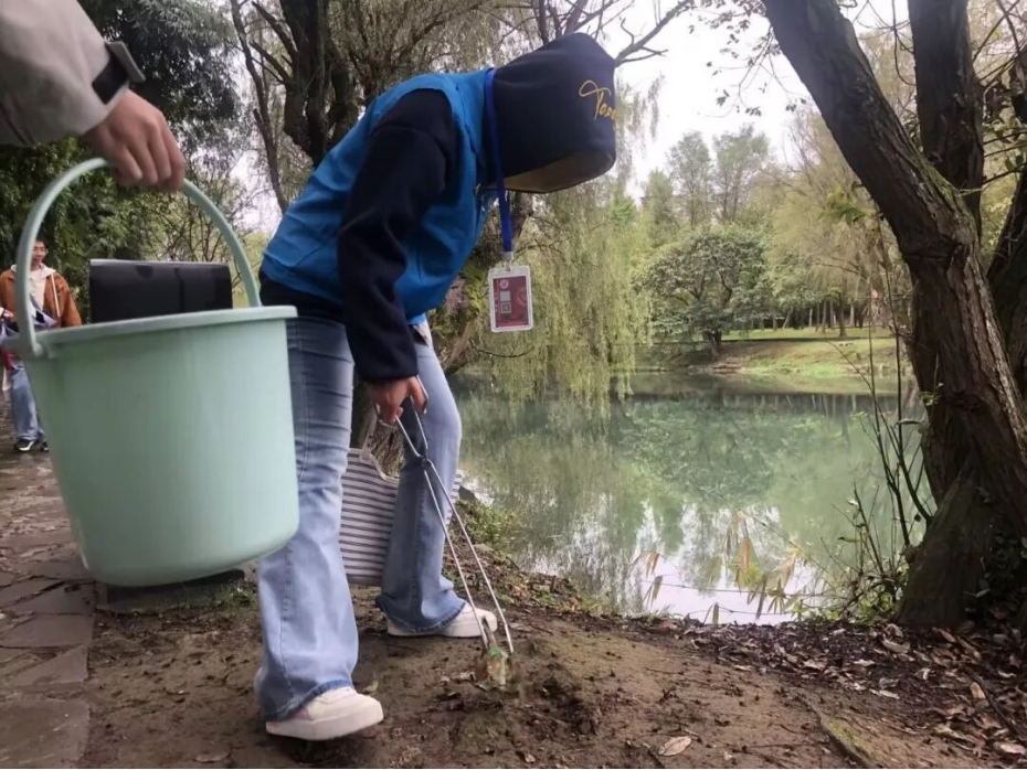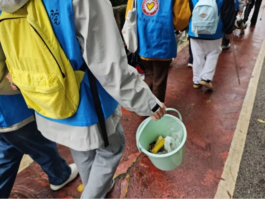 活动当天阴雨连绵,却丝毫没有浇灭志愿者们的满腔热情。带队人员仔细分发钳子、垃圾桶等工具,反复强调安全事宜后,志愿者们迅速分成两列,撑着雨伞在河岸整齐有序地前进,细致清理河岸垃圾。哪怕路面湿滑难行,大家也毫无懈怠,深深浅浅的脚印,是他们在护水之路上留下的坚定印记。