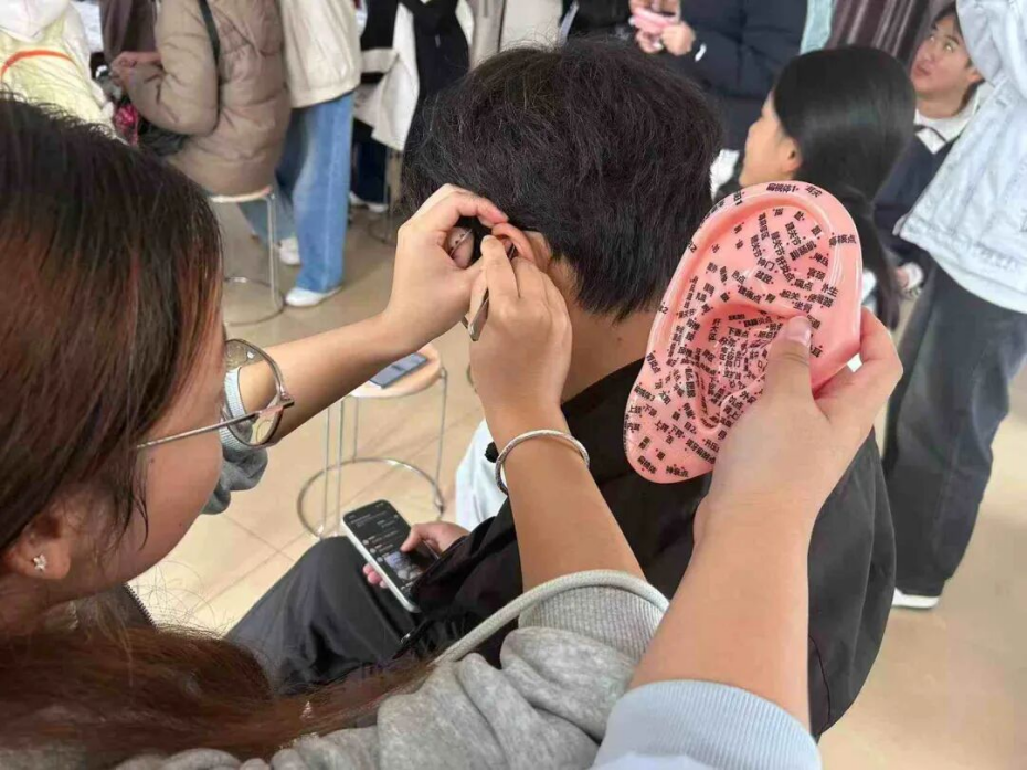 同学们满怀期待来到教室,大家互相交流贴敷技巧,分享使用感受。如今,耳穴贴不仅成为个人养生的常用品,更走进家庭、办公室、校园等场景,成为传递健康的纽带。不少家庭会全家共用,互相帮忙找准穴位贴敷;同事间互相推荐,分享不同穴位的调理功效;朋友聚会时,耳穴贴甚至成为交流养生心得的热门话题。