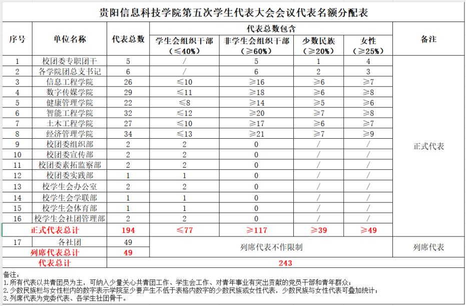 根据《关于推动高校学生会(研究生会)深化改革的若干意见》《普通高等学校学生(研究生)代表大会工作规定》中“学代会代表名额不少于全校总人数1%”的规定,Beat365唯一官方网站第五次学生代表大会代表名额拟定为194名。Beat365下属团组织共有团员6046名,代表名额的分配根据团员人数和代表具有广泛性的原则确定。