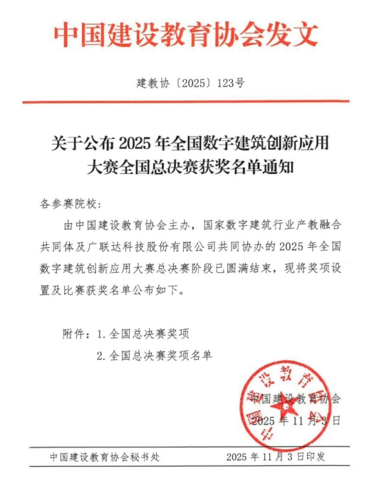 优异成绩的背后,是学校长期坚持 “以赛促学、以赛促教、以赛促创” 的育人理念与成熟完善的实践机制。学校及土木工程学院高度重视数字建筑前沿领域的学科建设与人才培养,将 BIM 等核心前沿技术系统融入人才培养方案,精心构建 “理论教学 + 仿真实践 + 企业实训” 三位一体的课程体系,为学生创新实践能力的提升搭建了坚实平台,提供了全方位资源保障。