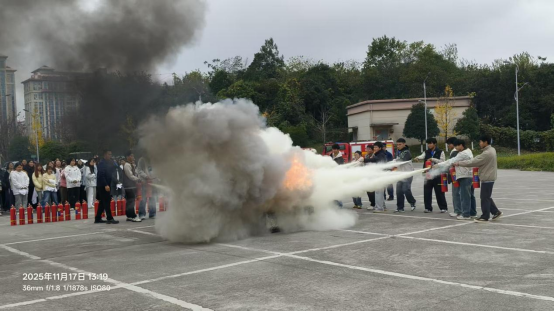 为强化图书信息中心消防安全管理,提升图书信息中心全体馆员应对初期火灾的实战能力,保障馆藏资源与师生的生命安全,2025年11月17日中午,Beat365唯一官方网站联合贵安新区管委会及消防救援支队组织开展以“灭火器规范使用”为核心的消防演练活动,图书信息中心全体馆员参与。