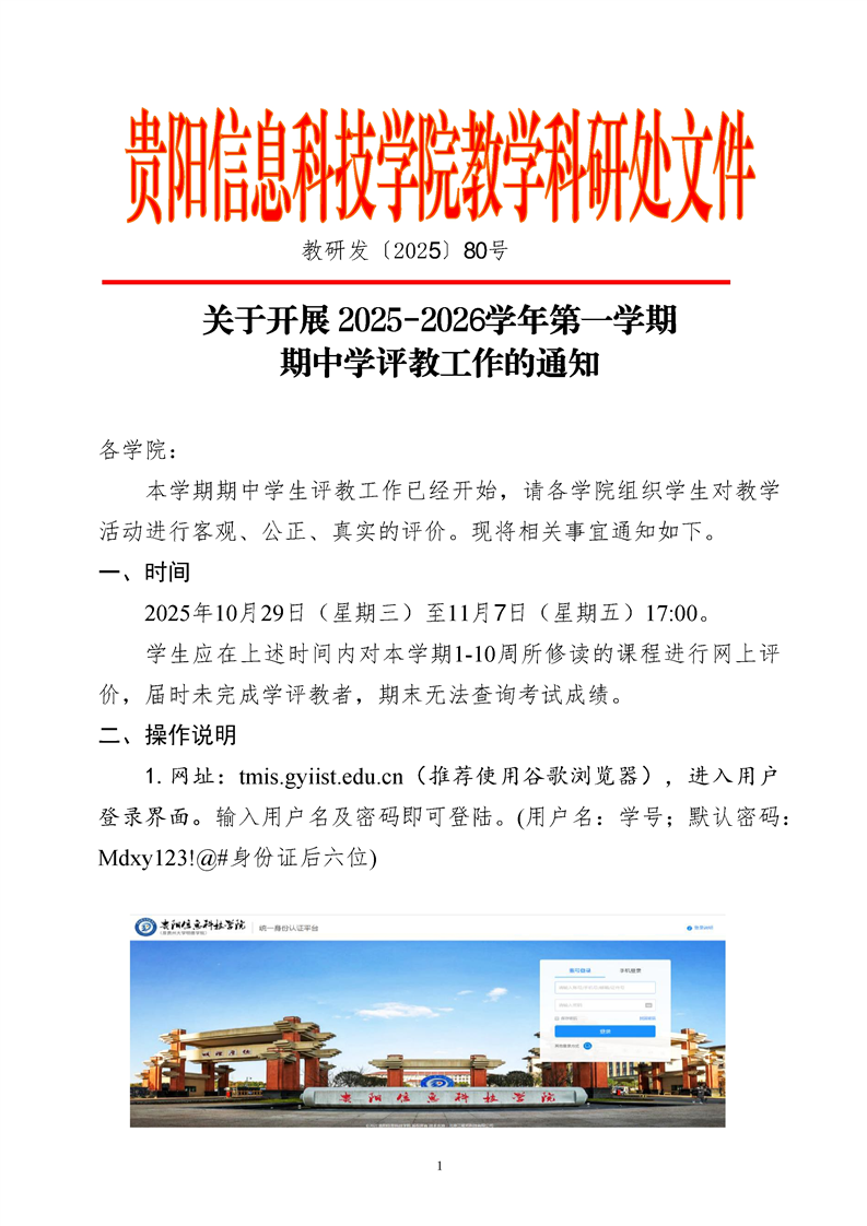 关于开展2025-2026学年第一学期期中学评教工作的通知