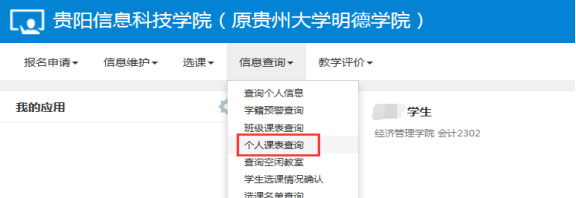 3. 查询学生个人课表:【信息查询】-【学生课表查询】