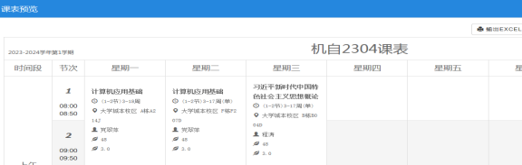 2.查询班级课表:【信息查询】-【班级课表查询】