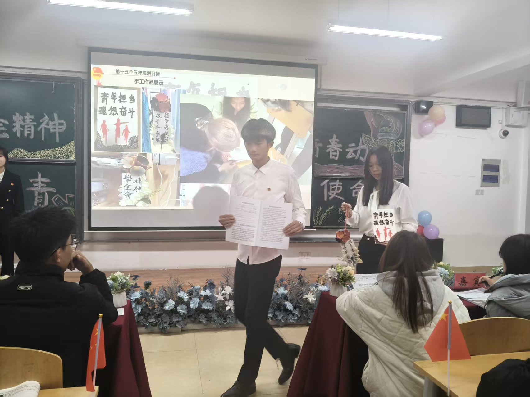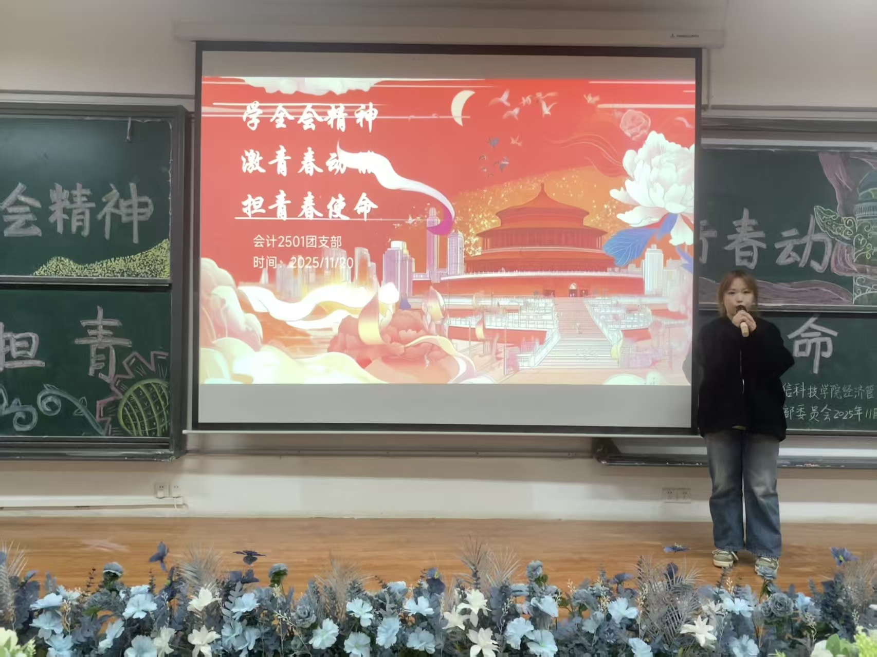 工作人员依次揭晓获奖名单,工商2401班摘得桂冠,工商2502班与会计2501班分别获得二、三名,魏德琴同学荣获“最佳讲解员”称号。念及获奖名单,台下掌声雷动,既是对各团支部实力的认可,更是青年践行全会要求、在强国建设中绽放青春的生动呼应。