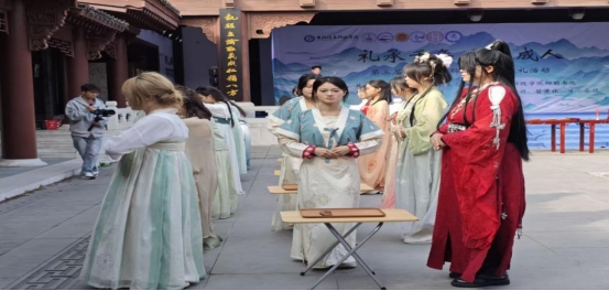 互动环节中,围绕“古时弱冠年龄”“冠礼加冠次数”等传统文化题目的有奖竞答,既活跃了现场氛围,也让学子加深了对千年礼脉的认知。