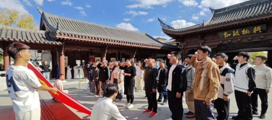 随后,活动进入入党宣誓环节:全体新党员面向党旗肃立,由党群工作部部长韩雪、学生工作部部长张吉林、思政教学部覃维华、团委王雯雪老师带领新党员们进行庄严宣誓;同时青年学子行传统冠笄之礼,正衣冠、明人伦的古仪,与“为人民服务”的誓言相映,让“修身齐家”的文化传承与“治国平天下”的时代使命,在青年身上实现了生动融合。