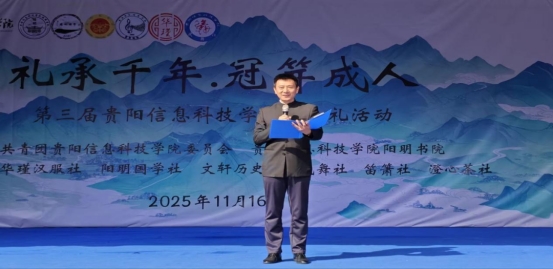 活动以开场舞《夜泊秦淮》启幕,校党委副书记詹凯以《党徽耀初心,冠礼承古训——践行新时代青年的“双礼”之诺》致开幕词。他援引《礼记·冠义》阐释传统冠笄礼“修身齐家”内核,结合党的二十届四中全会精神点明新时代“政治成人礼”的使命底色,寄语18岁学子以“以学立身、以行践诺、以廉修身”为方向,将校训融入日常,勇担强国复兴使命。