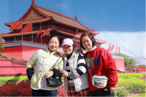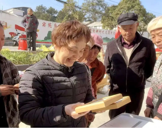 活动现场,久安乡集市的院坝中,一面印着“天安门”图案的幕布格外醒目。冬日暖阳裹挟着山野清风,为镜头下的一张张笑脸镀上温暖光晕:牵着女儿小手的中年父亲指尖藏笑,挽着儿子臂膀的银发母亲皱纹里漾着温软,结伴而来的乡亲们勾肩并肩,将身影稳稳嵌入背景里的家国图景。志愿服务团队手持相机穿梭其间,精准捕捉每一个自然真挚的瞬间,现场细致修图调整光影、理顺衣角发丝,随后快速打印照片并装入木质相框。“活了大半辈子,头回和‘天安门’同框哩!”接过相框的老人反复摩挲着木纹,脸上的笑容质朴而真切。