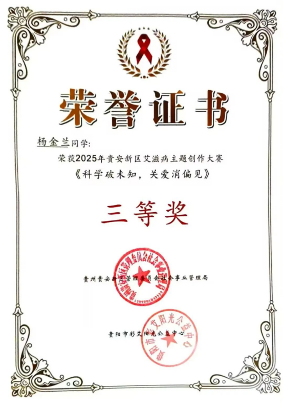 11月30日,由中共贵阳市委社会工作部、贵阳市疾病预防控制中心、共青团贵阳市委员会、贵安新区社会事务管理局联合主办的2025年度“青春无毒,健康同行---共筑校园安全防线"系列主题竞赛颁奖仪式在贵州师范大学举行。