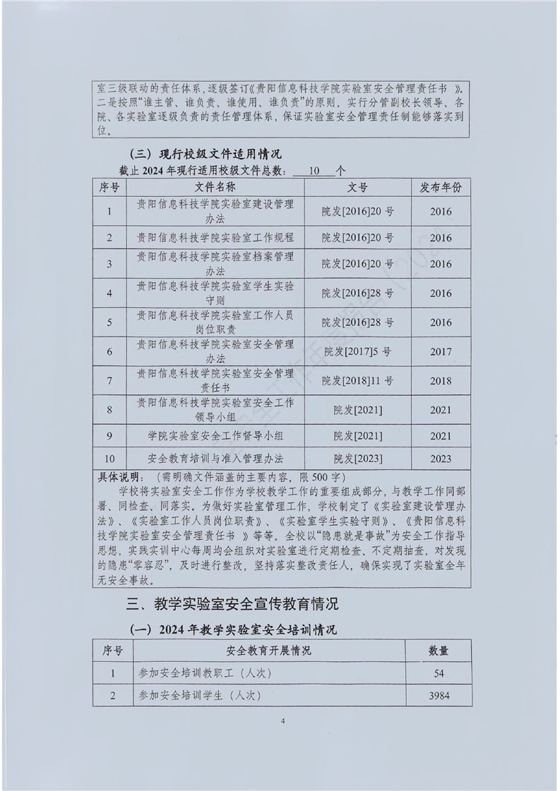 Beat365唯一官方网站2024年度高校教学实验室安全工作年度报告
