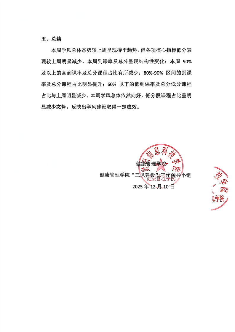 健康管理学院2025—2026学年上学期第十三周学风巡查督导工作简报
