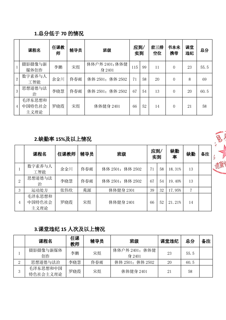 健康管理学院2025—2026学年上学期第十五周学风巡查督导工作简报