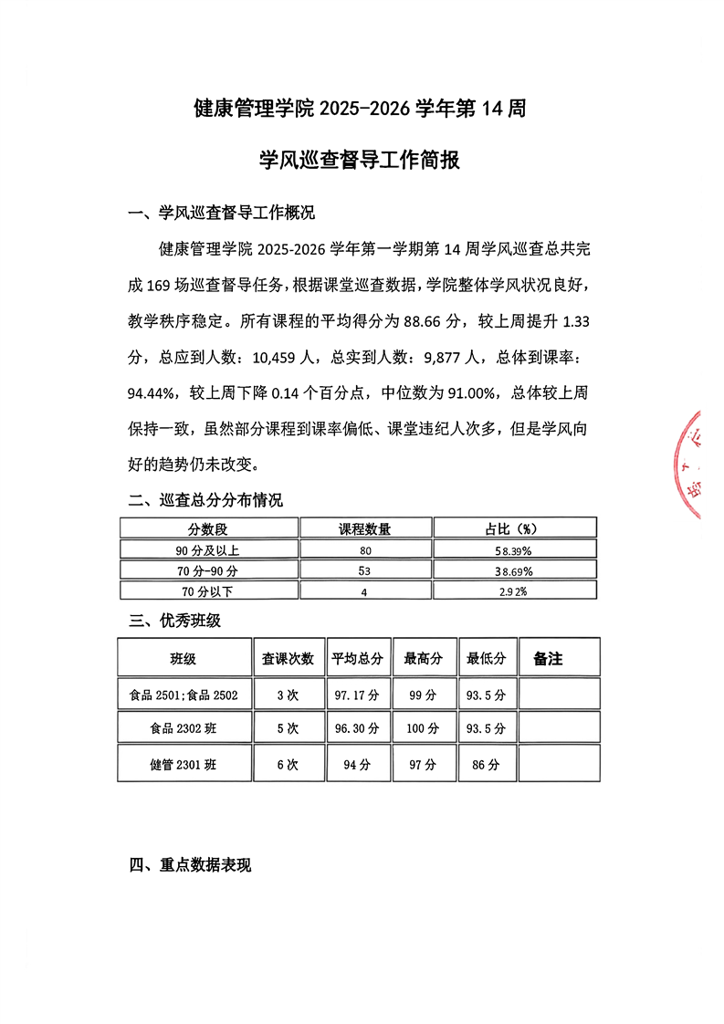 健康管理学院2025—2026学年上学期第十四周学风巡查督导工作简报