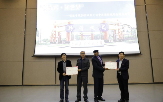 在现场热烈的氛围中,我院院长王颖华为马斯卡拉教授颁发荣誉教授及双创导师聘书,副院长杨波为陈耿宣教授颁发双创导师聘书。
