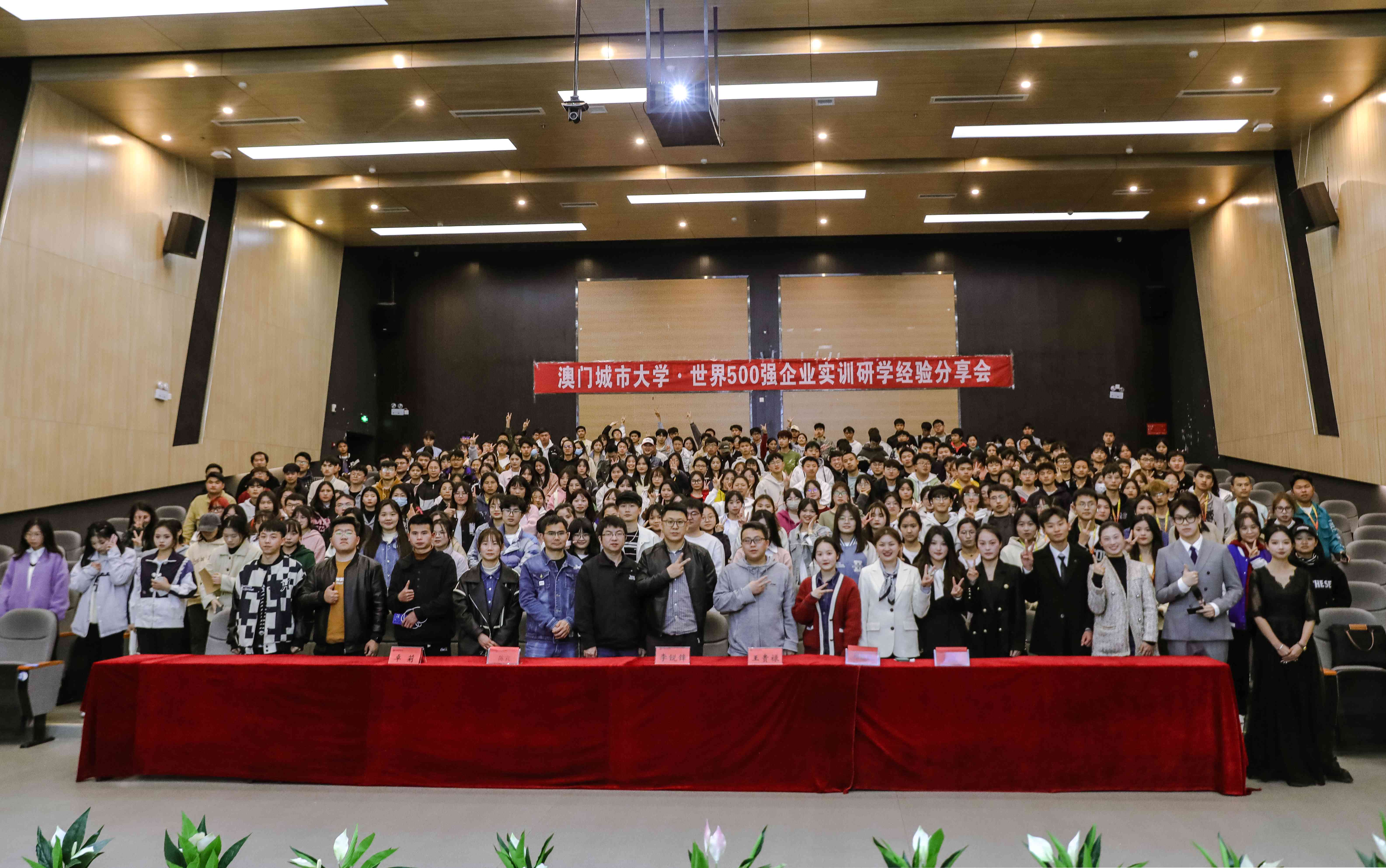 2023年3月9日晚19:00Beat365国际合作与交流处在图书馆成功组织召开2022年澳门城市大学·世界500强企业实训研学经验分享会。国际合作与交流处李锐锋处长、各系部教师代表6人、项目经理汤燕老师以及3名赴澳优秀学生参加,现场师生参与人数共计300余人。本次分享会由国际合作与交流处牵头组织,邀请了来自经济管理系的汪胜强同学、土木工程系的杨菁菁同学、智能工程系的朱国静同学作为赴澳学生代表为全校师生作倾情分享,旨在搭建优质的交流分享平台,让师生们近距离地与赴澳学生面对面交流,全方位地了解他们在澳门城市大学和宏利金融集团的所学所感,所得所获。