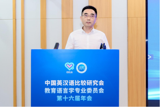 中国英汉语比较研究会教育语言学专业委员会会长、上海交通大学外国语学院博士生导师常辉教授致辞。他从教育语言学的核心任务出发,介绍了可继续探索与拓展的相关新领域,并提出教育语言学应在理论及实证研究方面与时俱进。
