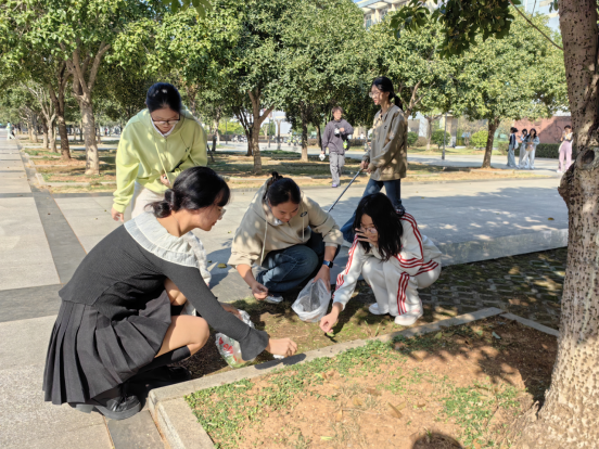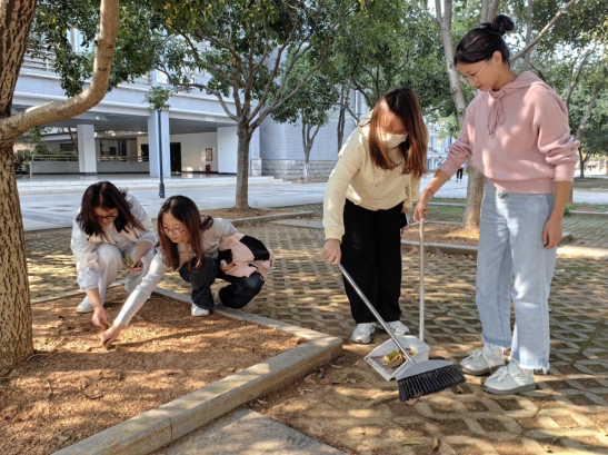 在学院党务干事周贝老师的带领下,同学们精神饱满,干劲十足。他们手持扫帚、铲子、垃圾袋等工具,对责任区内的道路、绿化带、教学楼周边等区域进行了全面清扫。从落叶到纸屑,从灰尘到杂草,同学们不放过任何一个卫生死角,用实际行动诠释着对校园环境的爱护与责任。