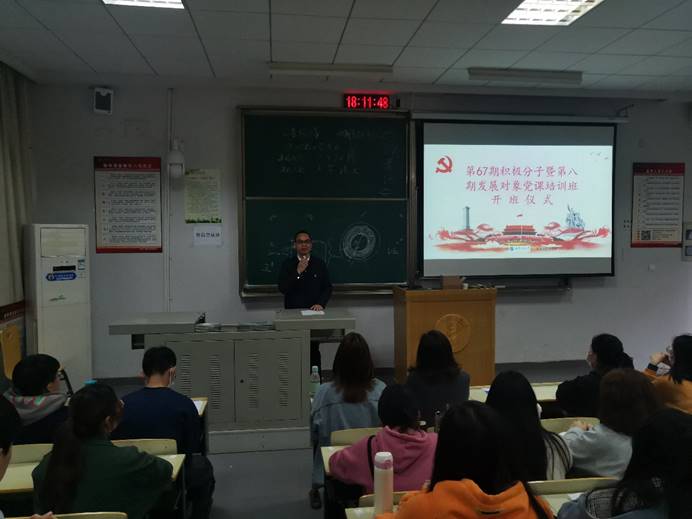 (通讯员胡荣)4月12日下午,新葡萄8883官网amg分党校在L4215教室举行“第67期入党积极分子暨第八期发展对象党校培训班”开班仪式。出席开班仪式的有学院党委书记陆新、党委副书记徐思思、党务干事顾泽文、各学生党支部负责人、及全体67期入党积极分子和第八期发展对象。