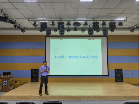 在 AI 赋能申报书撰写这一环节,刘煜老师毫无保留地分享了借助AI工具优化选题、完善策划书提纲的实用经验,使同学们切实领略到AI在创新创业领域的强大应用价值。英语专业胡云云同学则结合自身丰富的参赛经历,分享了具体的实战案例。她从选题思路入手,深入讲解策划书提纲撰写要点,让同学们对赛事的实践环节有了更为直观且深刻的认识。