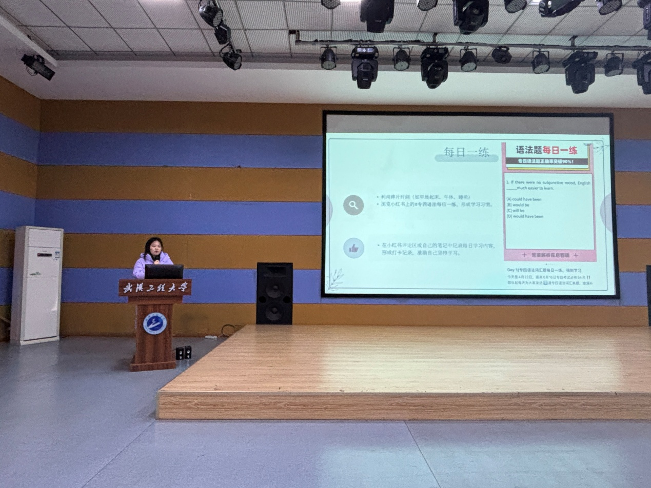 最后,张老师号召同学们向优秀的学姐看齐,结合自己的实际情况,制定备考计划,并在行动中落实。老师们将与23级学子并肩作战、勇往直前,期待见证英语专业四级考试的新突破!