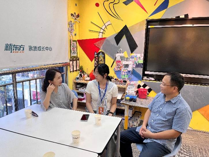 陈明芳院长一行实地参观了实习生的教学环境,观摩了学员课堂,并与新东方校区负责人及实习指导教师展开座谈。新东方代表高度评价武工大学子,称赞其“专业基础扎实、教学实践能力突出”,并特别提及实习生在教学环境中的快速适应能力。