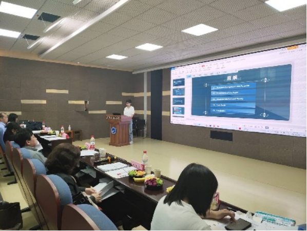 小组答辩秘书宣读完硕士学位论文答辩程序之后,答辩主席宣布答辩开始。外国语言文学学科研究生答辩汇报分别从语言学和文学角度阐述了研究背景、研究方法、研究过程和研究结果等,研究领域涵盖话语分析、生态女性主义、叙事学等,研究素材包含新闻语篇、演讲、企业社会责任报告、诗歌和小说等。