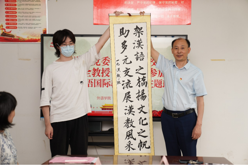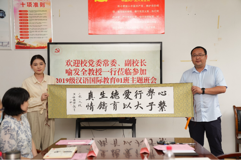作为2019级汉教(1)班荣誉班主任,喻发全关心询问了同学们近期学习和生活情况,全面了解了班级建设进展。他对师生提出了三点希望,一是希望老师们用爱“浇灌”学生,做到言传身教、率先垂范,争做新时代“四有”好老师;二是希望同学们用行动“丈量”世界,在实践中不断磨砺自己,争做堪当大任的时代青年;三是希望同学们用宽广胸怀放眼世界,以开阔视野增进多元文化交流,为国家文化建设贡献力量。他强调,作为汉语国际教育专业学生,要坚定文化自信,立足中国实际,讲好中国故事,传播中国声音,让世界更好“读懂”中国。
