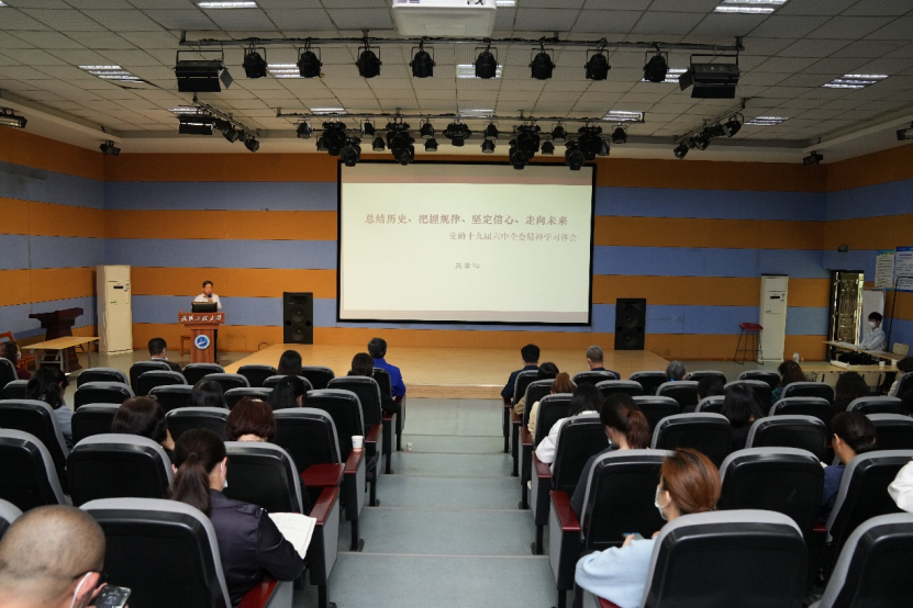 (通讯员顾泽文)为深入学习贯彻党的十九届六中全会精神,进一步引导师生深刻领会全会精神的丰富内涵与核心要义,5月19日下午在文科楼313报告厅,校党委常委、统战部部长、科学技术发展院院长吴云韬以《总结历史、把握规律、坚定信心、走向未来》为题,为新葡萄8883官网amg、体育部教职工宣讲党的十九届六中全会精神,党委宣传部副部长赵小硕和新葡萄8883官网amg、体育部领导班子成员参加宣讲会,会议由新葡萄8883官网amg党委书记王火利主持。
