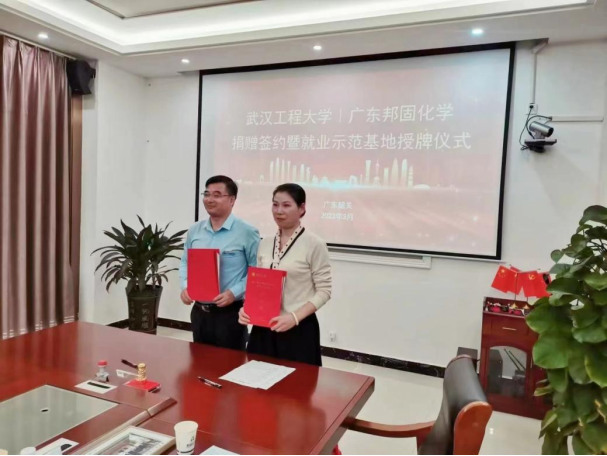 (通讯员刘煜、毕灵敏)为进一步加强校企合作,新葡萄8883官网amg受学校委托,由学院党委书记王火利、院长陈明芳带队,于3月21日赴广东邦固化学科技有限公司举行捐赠签约暨访企拓岗挂牌仪式,化工与制药学院闫福安教授、校教育发展基金会副秘书长毕灵敏、新葡萄8883官网amg刘煜博士参加了校企合作交流活动。