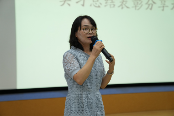 凃朝莲主任代表英语专业教研室对2019级专业实习进行了总结,明确指出本次实习的收获和不足,给20级同学讲解专业实习流程。凃主任对未来专业实习提出了期望并鼓舞大家积极参与实习,从中收获。实习指导老师代表程建山老师从学生的实习周志出发,汇报了学生实习中的思维转变与进步以及深刻反思,对大家的表现给予肯定,并期望大家在以后的实习中也饱含热情、积极向上。2019级优秀实习生周婷婷、全子衿、姜嘉婧、吴亚莉、王亚宁作为代表,向2020级正在进行认识实习的师弟师妹们分享暑假专业实习经历,2020级学生深受激励和鼓舞。