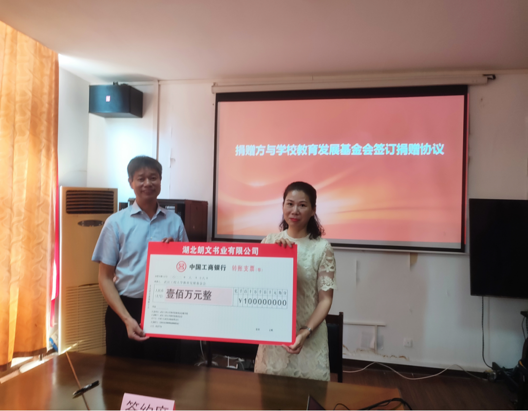 在与会人员的见证下,秘书长邓新洲代表学校教育发展基金会与董事长卢汉生先生签订了捐赠协议书。副秘书长毕灵敏代表基金会接受了卢汉生董事长代表企业捐赠的支票。