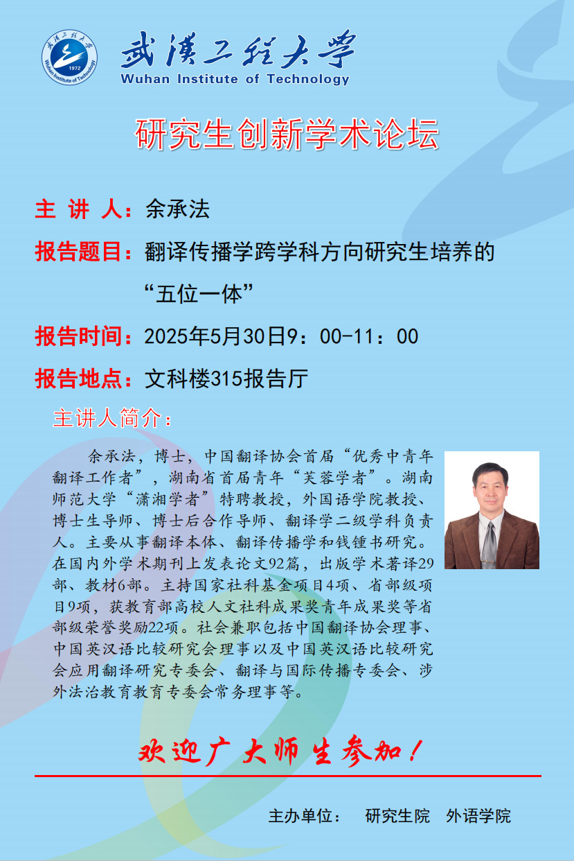 题目:翻译传播学跨学科方向研究生培养的“五位一体”