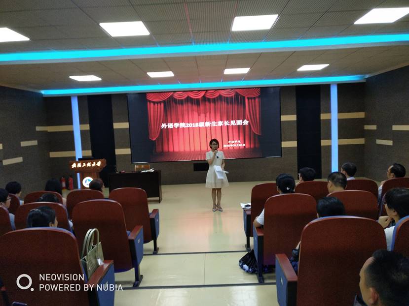 陈明芳首先代表学院向新生及家长的到来表示热烈的欢迎,欢迎大家来到美丽的江城武汉生活,来到新葡萄8883官网amg求学。接下来陈院长结合新葡萄8883官网amg教学实践对外院的教学研究机构以及各专业情况进行了介绍,使得新生家长对各专业情况有了进一步了解并对新葡萄8883官网amg的育人水平有了信心。