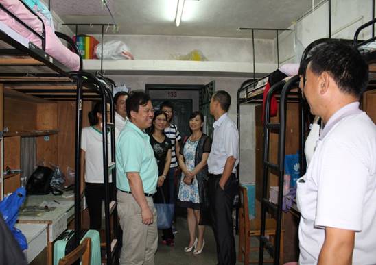 每到一个寝室,一行人都仔细询问学生目前的情况,叮嘱孩子们在遇到问题时要及时联系老师,没有解决不了的问题,办法总比困难多。党委书记彭石玉教授表示希望大家在大学四年里住的舒心,学的开心,学有所成。