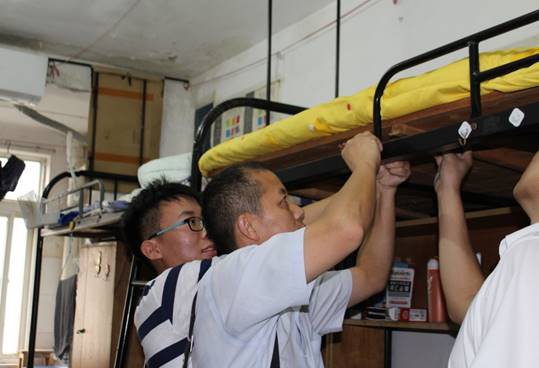 当看到学生铺位安全防护栏缺失,为了避免安全隐患,赵院长亲自帮学生加固床上的安全防护栏。新生感到特别温暖,十分感谢老师的辛苦付出,为老师的“暖男”风范点赞。