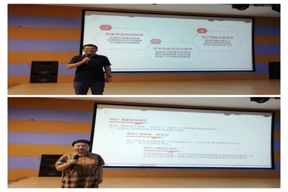 管理学院管理科学与工程系的黄珂老师和万庆老师则进一步阐释了英语(辅修电子商务)专业的独特价值与社会需求。他们指出,该专业融合了语言与商务的双重优势,是适应当前全球化趋势、满足市场多元化需求的优质选择。两位老师的发言,不仅增强了新生们的专业认同感,也坚定了他们投身该领域、实现个人价值的决心。