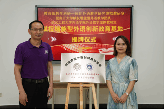 新葡萄8883官网amg班子成员及教师代表参加了揭牌仪式。学院院长陈明芳与南开大学张文忠教授共同为“赋权增能外语创新教育基地”揭牌。陈明芳院长对张文忠教授来学院参加活动表示热烈的欢迎。她指出,新葡萄8883官网amg与南开大学共建“赋权增能外语创新教育基地”,有利于全方面学习借鉴南开经验,提升新葡萄8883官网amg教师的教学和科研能力,为我校外语教育高质量发展提供有力支撑。