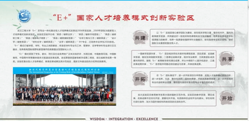 The “E+ Broad-Specialized Integrated Compound Talent Cultivation Mode Reform” of Wuhan Institute of Technology has been implemented since 2006 and was approved as a National-level Experimental Zone for Innovative Talent Cultivation Modes in 2009.