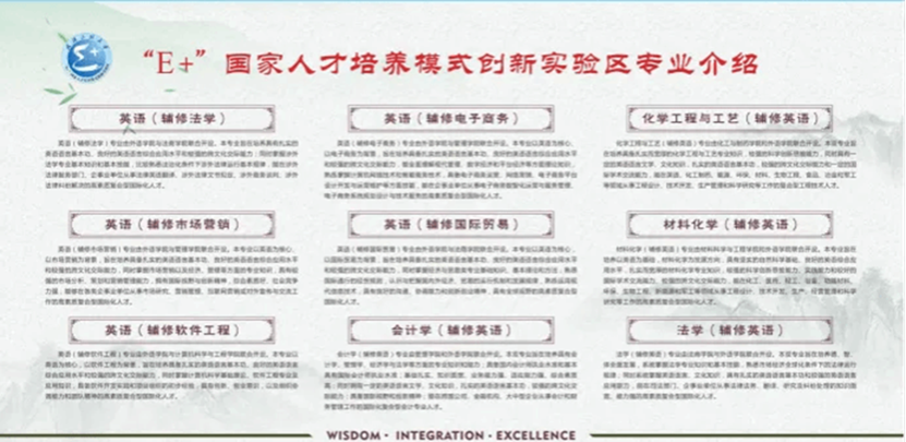 Currently, the experimental zone encompasses nine programs, including “English (Minor in Law)”, “English (Minor in Marketing)”, “English (Minor in Chemical Engineering)”, “English (Minor in E-Commerce)”, English (Minor in International Trade)”, “Chemical Engineering and Technology (Minor in English)”, “Accounting (Minor in English)”, “Material Chemistry (Minor in English)”, and “Law (Minor in English)”, having cultivated over 2,000 students.