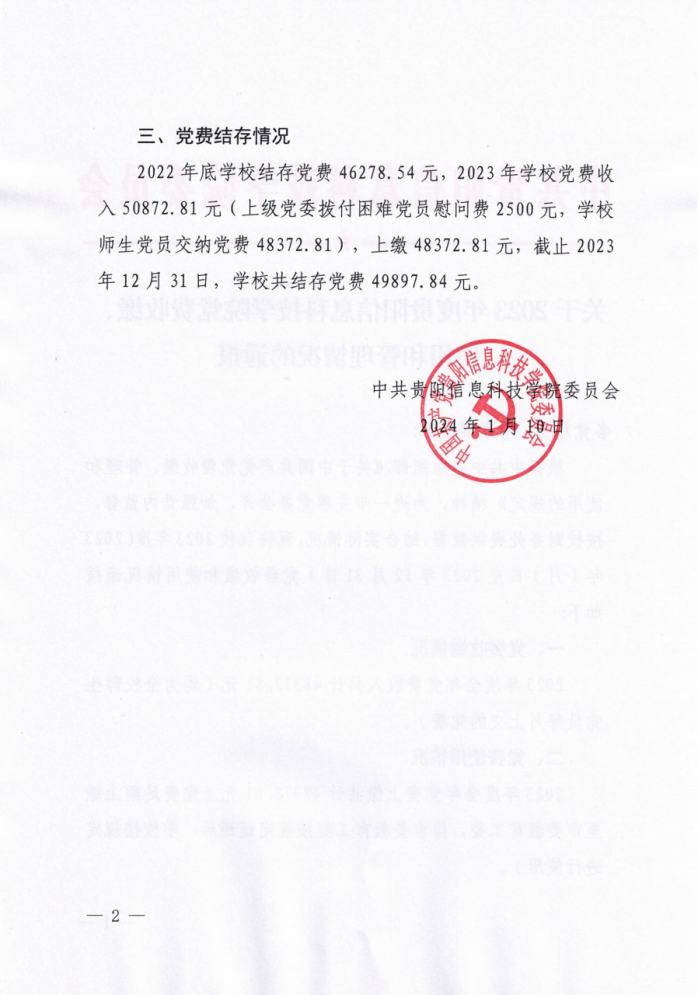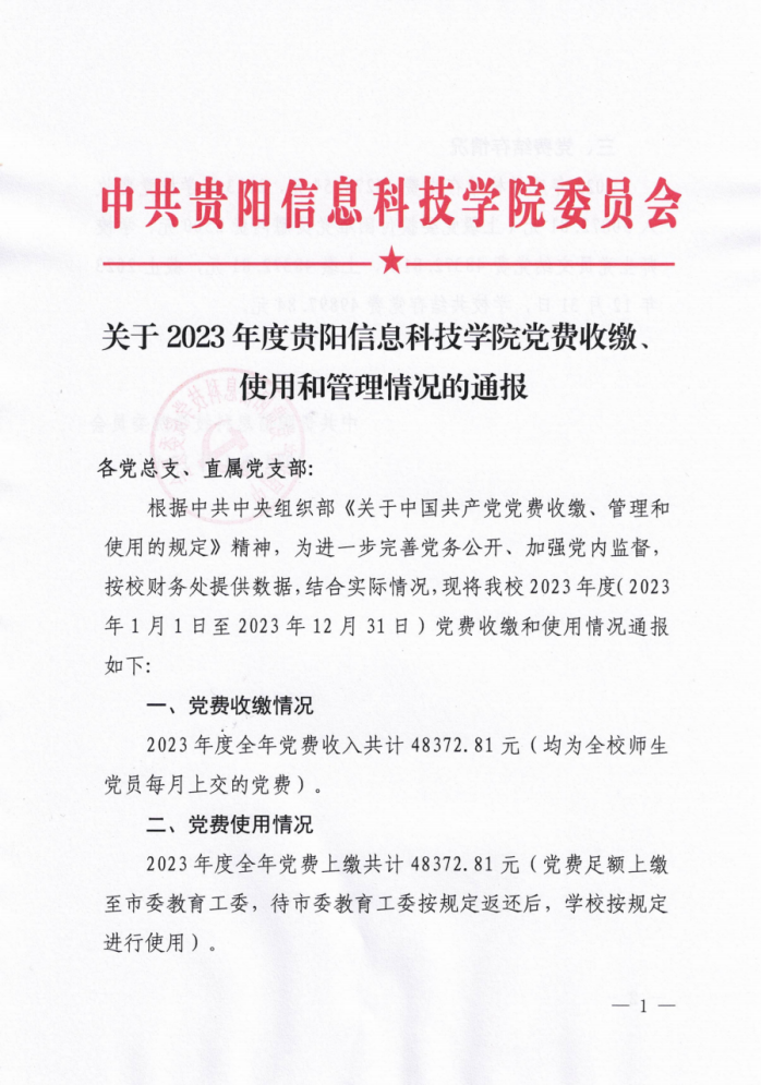 转发:关于2023年度Beat365唯一官方网站党费收缴、使用和管理情况的通报