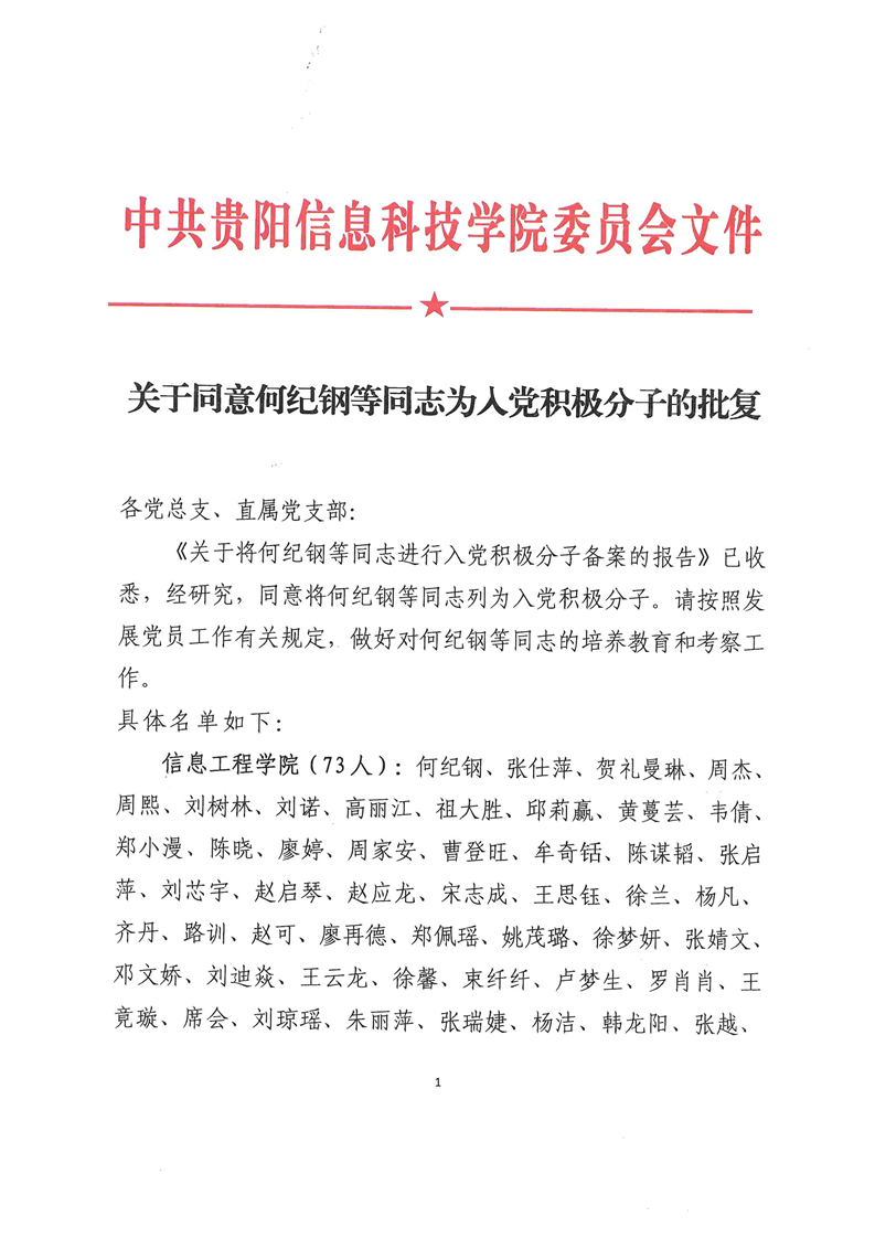 转发:中共Beat365唯一官方网站委员会关于同意何纪钢等同志为入党积极分子的批复