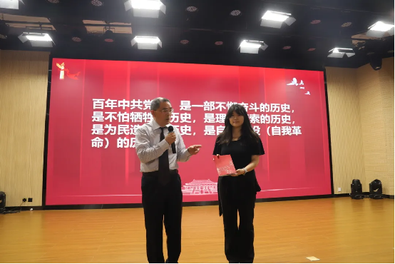 在专题辅导讲座阶段,唐建荣、王韦韦采用“主讲+主唱”的“理论宣传二人讲”形式,以音乐为媒、以党史为魂,为在场党员带来一堂别开生面的音乐党史课,让红色旋律与理论讲解同频共振,在歌声中串联起百年党史的壮阔脉络。